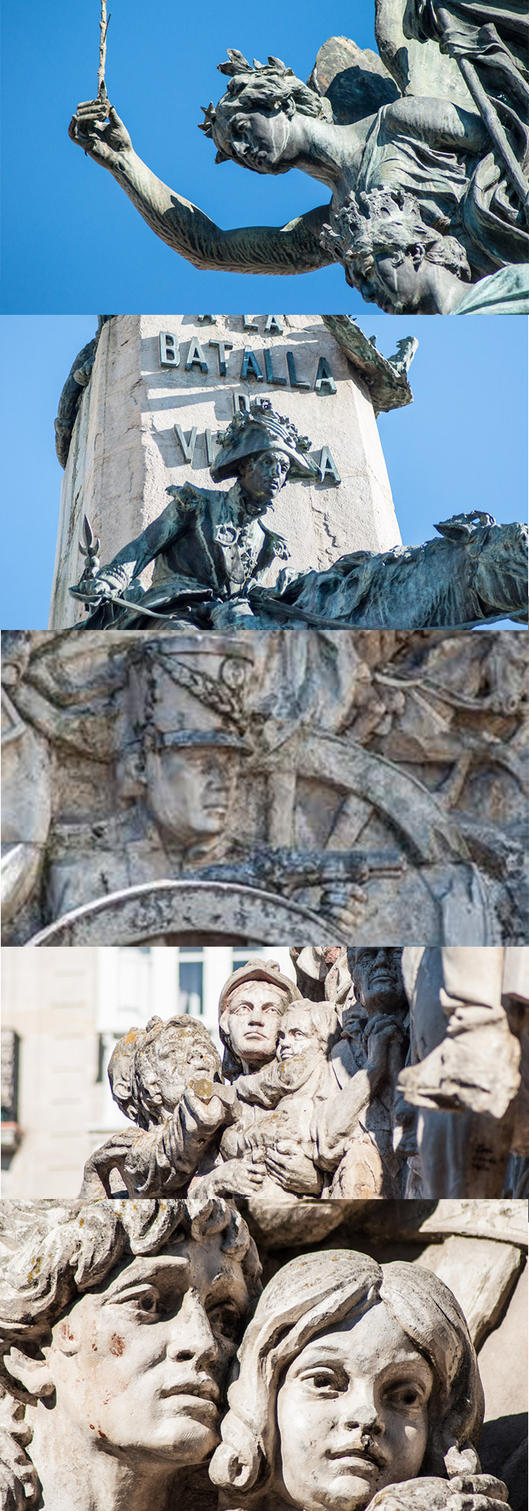 La construcción del monumento a la batalla comenzó el 12 de octubre de 1914. Debiera haberse terminado en un año, tal y como se decía en las bases del concurso pero se tardó casi tres años en inaugurarse, la guerra mundial que empezó ese año, las huelgas y la propia renovación de la plaza que hizo que hasta mediados de 1915 no pudiera cimentarse intervinieron en el citado retraso.