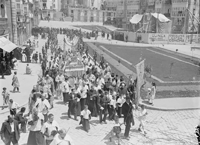 La obra finalmente se llevó a efecto. En la imagen se ve la procesión del Corpus Cristi cuando se iniciaban las obras de construcción.