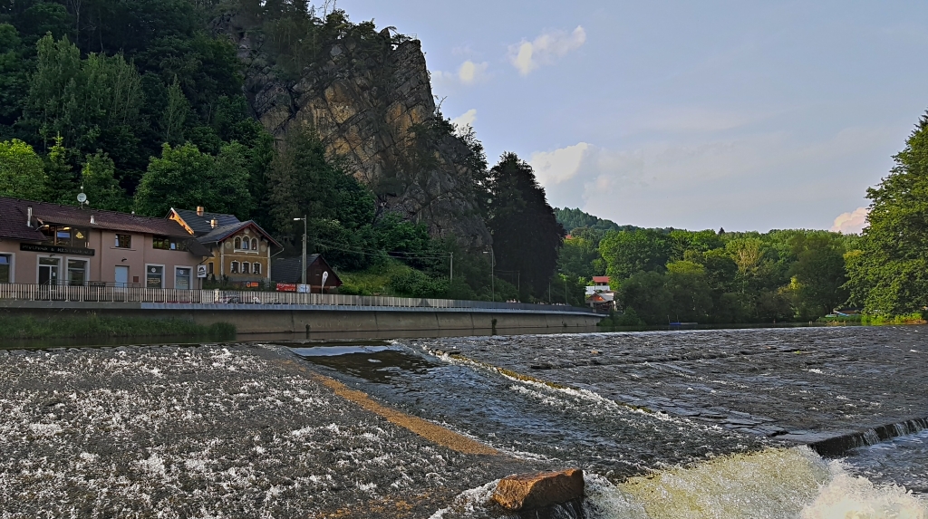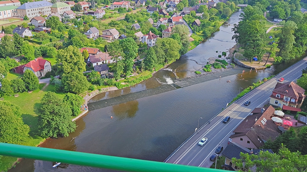 The third photo will be taken from the Pantheon viewpoint and will capture a part of the green railing and weir on the Jizera River.