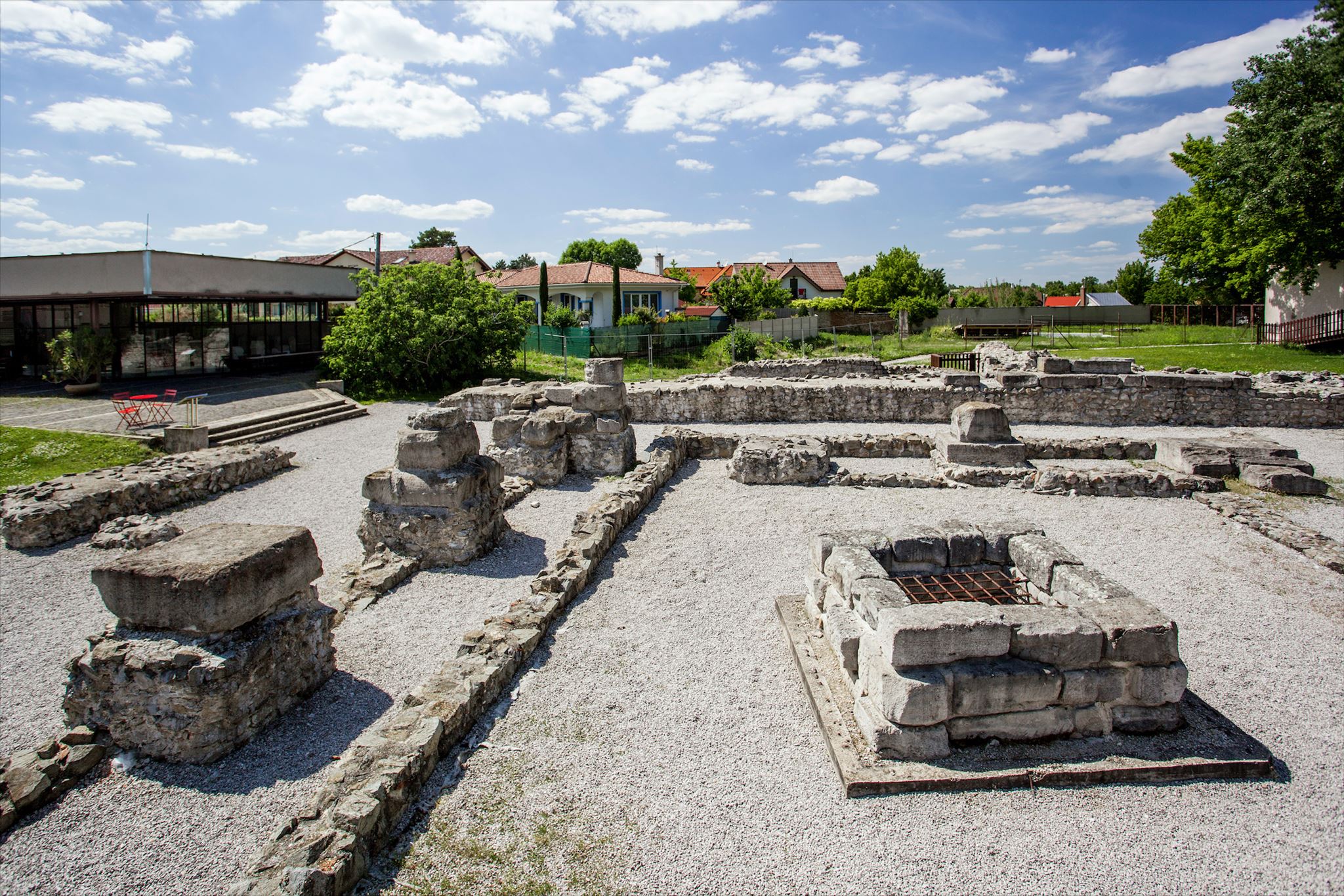 A simple gravel and lime floor with brick rubble has been preserved in the south-eastern part of the fort. The more costly floors in Roman buildings were made by pressing mosaic stones, stone boards, bricks, or tiles into a thin lime layer.