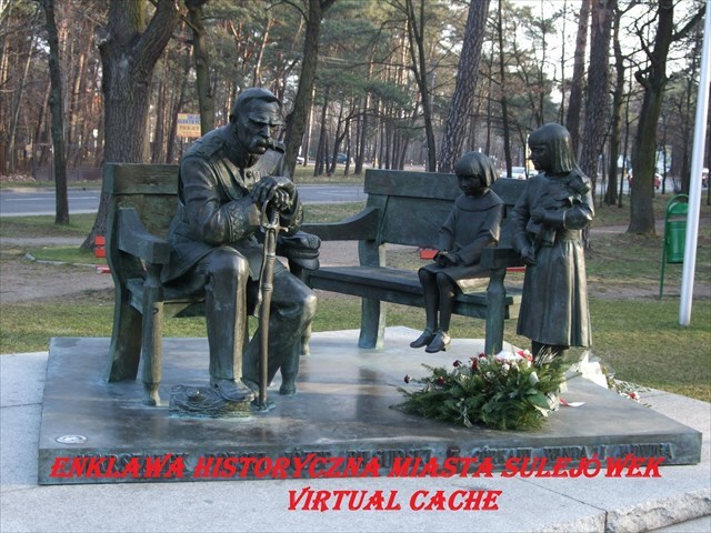 2. Udaj się teraz w kierunku zachodnim, w miejsce wskazane przez waypoint "Kopiec współtwórców Niepodległej i pomnik Józefa Piłsudskiego wraz z rodziną". Dojdziesz do ławeczki na której zasiada Józef Piłsudski wraz z córkami,Wandą i Jadwigą.