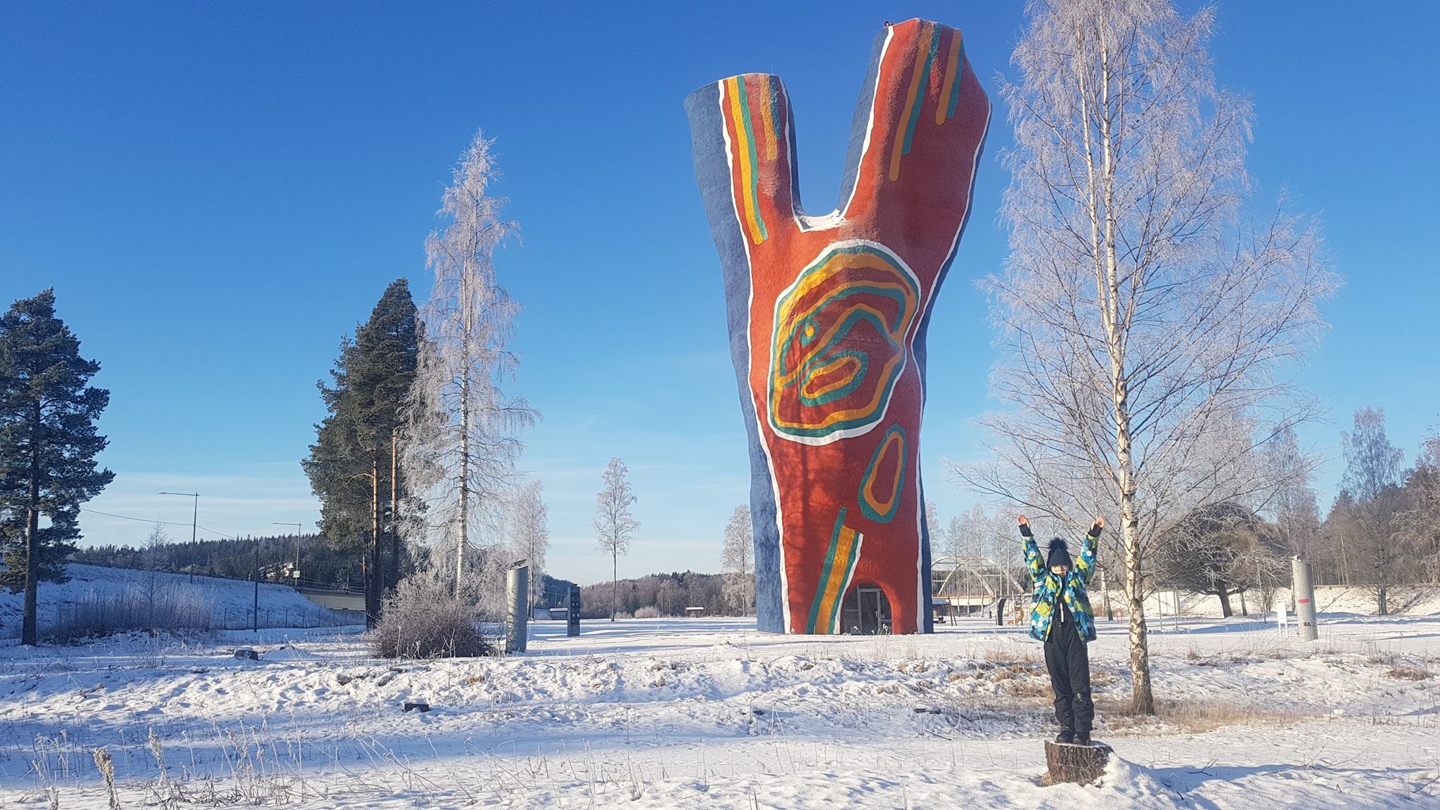 Originally, the Y was meant to be located along the E14 in Östersund as a symbolic gateway to the mountains. A figure with raised arms, a greeting to the North and in the Sami colors that were part of Bengt's natural palette.