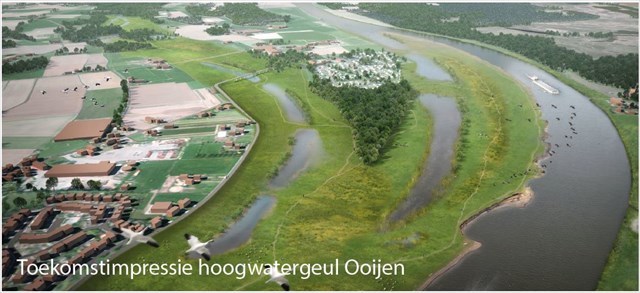 Om de Maas bij hoogwater meer ruimte te bieden wordt bij Ooijen een hoogwatergeul aangelegd. Door de afgraving van zo’n 1,8 miljoen kuub grond, ontstaat een soort ‘spitsstrook’ die bij hoogwater grote hoeveelheden water snel kan afvoeren. De hoogwatergeul wordt ingericht als een vrij toegankelijk waterrijk natuurgebied met volop mogelijkheden voor recreatie. Rond Kasteel Ooijen en bij Broekhuizenvorst worden de dijken verbeterd.