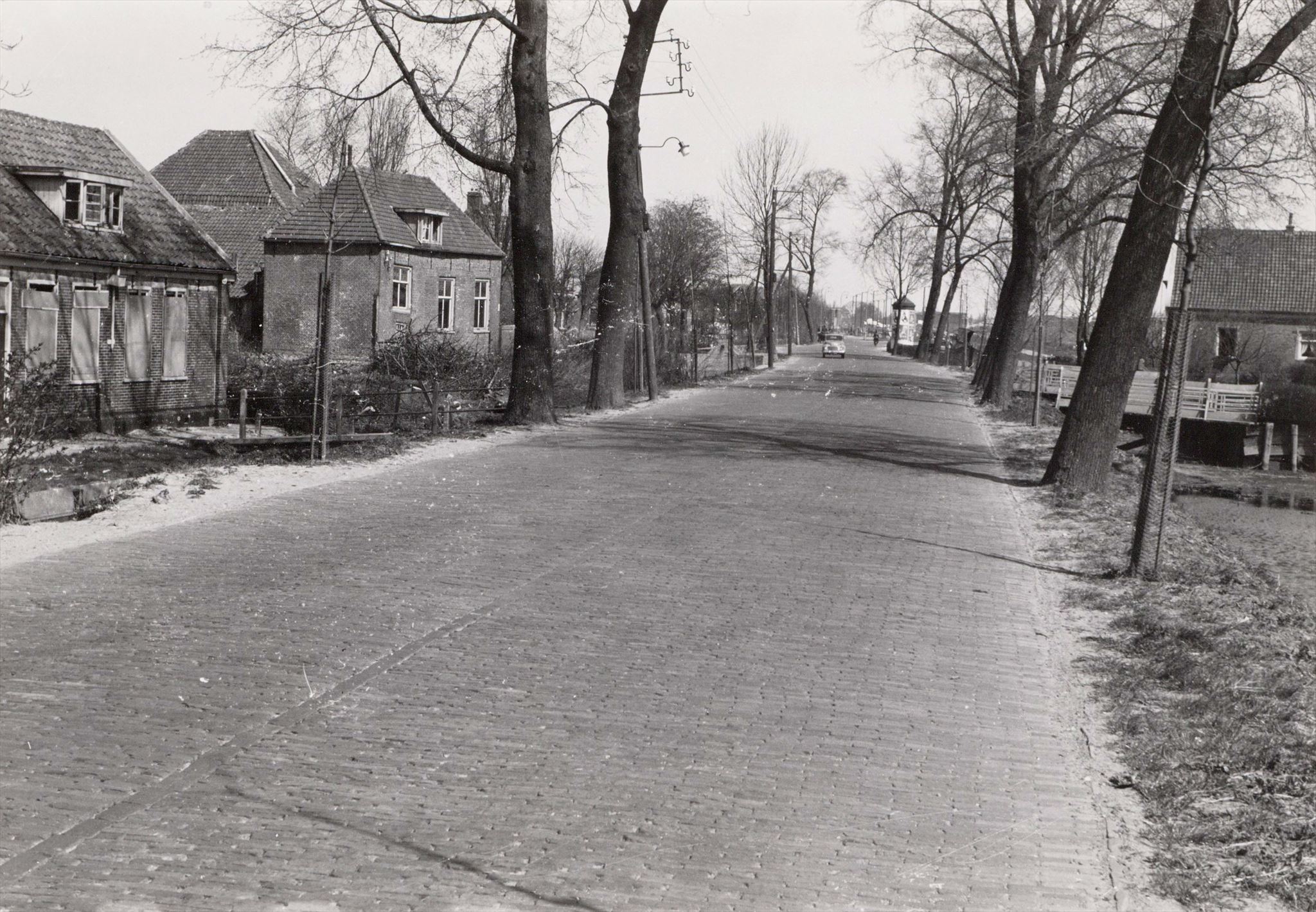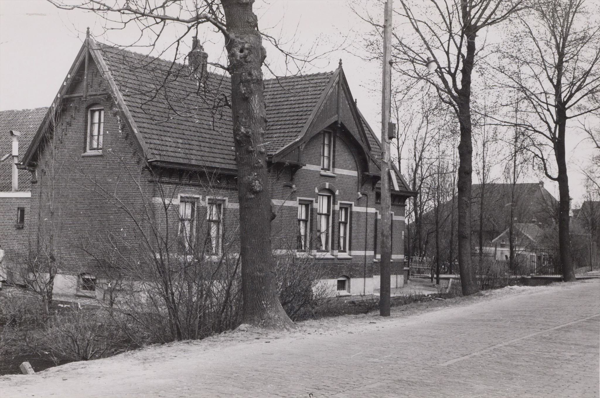 Waar toen de oprit naar de boerderij was, staat nu een lantaarnpaal, midden op de kruising.