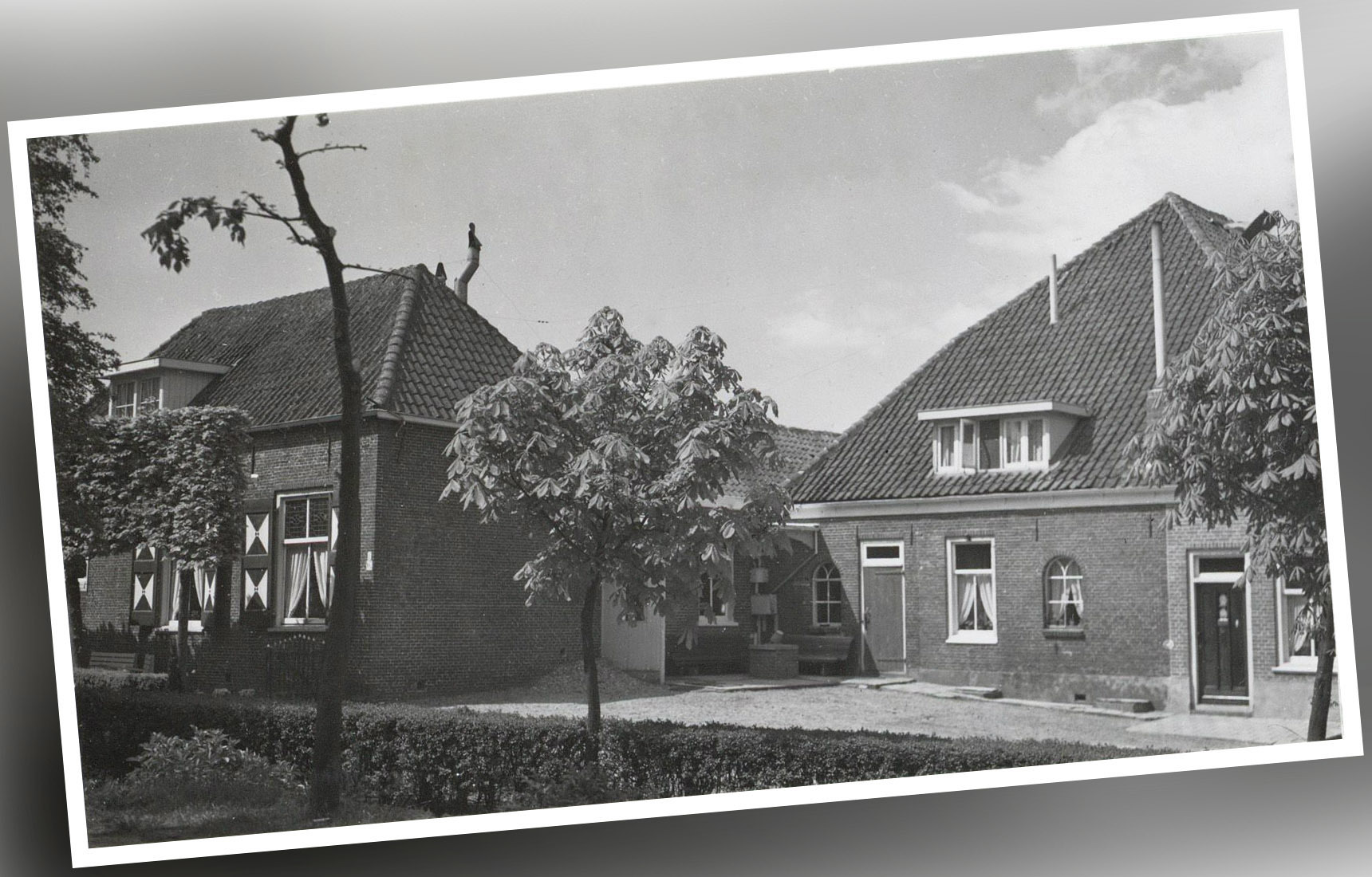 Bij boerderij Veldzicht is de schuur verdwenen maar het huis is nog aanwezig. Zelfs het hek is weinig veranderd.