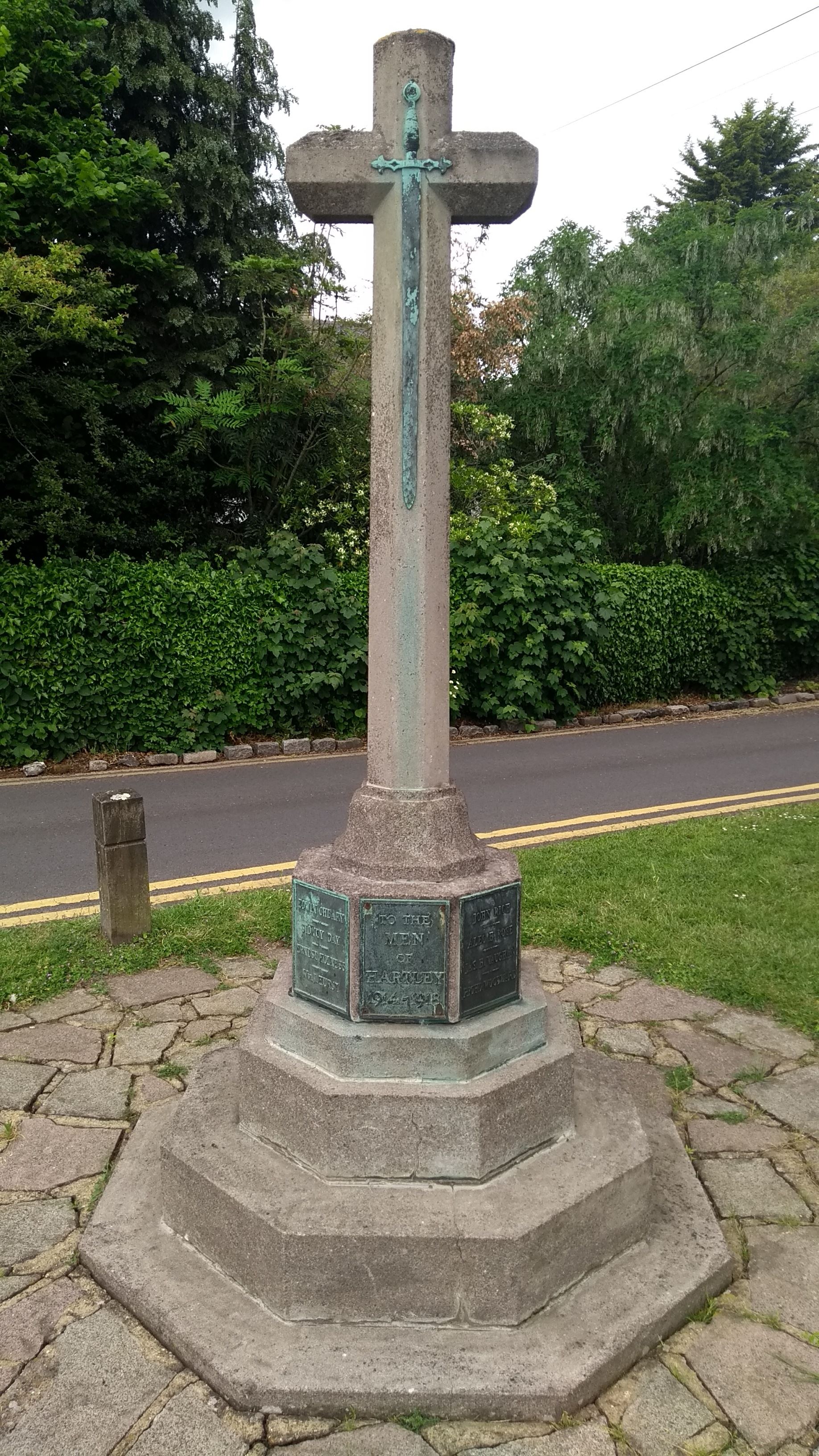 Until 1970, the Memorial stood at the junction of Ash Road and Church Road and in that year it was moved to its present site on Hartley Green.