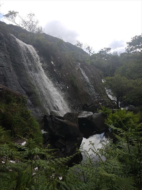 Follow the track (such as it is) from the parking lay-by through the wood, keeping the Crinnagh river to your right as you progress for guidance. Before too long you will hear, and then see, the waterfall.