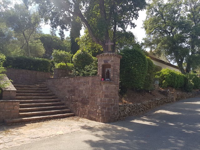 En arrivant de l'avenue Mireille, on arrive d'abord devant un petit oratoire de chemin, intégré au mur de soutènement.
