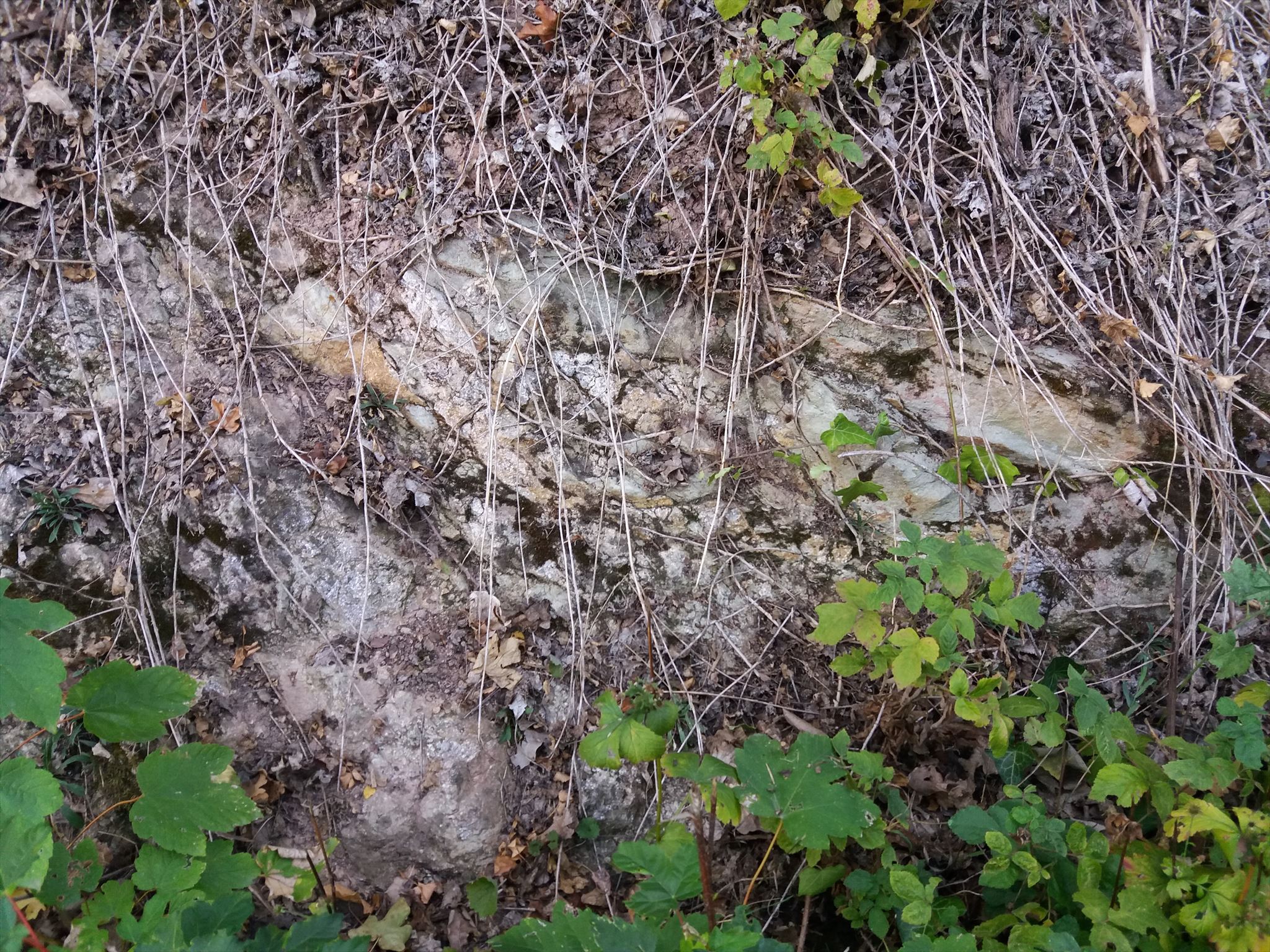 3. Go to Stage 3 (optional) and search for the image below. This station is a small excursion / detour that could offer one or two explanations to the interested observer. But important is the view over the scenery down by the river. A good place for a photo that you could optionally add to your log. Look for the following formation (right side of the slope, in summer it could be a bit overgrown) and try to assign the visible structures to stations 1 and 2. It's hard for me, but for you, the experienced adept of geology, this should be easy.