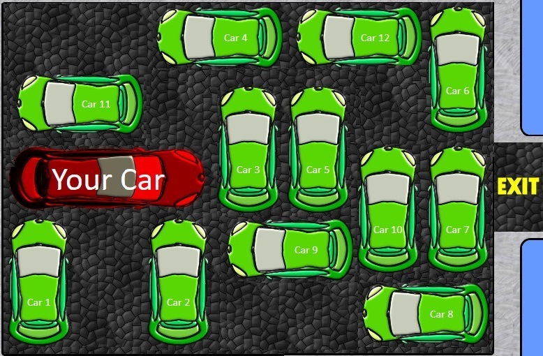 -There are walls on the left, top, and bottom of the parking lot. I.e. Car #6 and #11 cannot drive straight, and car #1 cannot reverse.