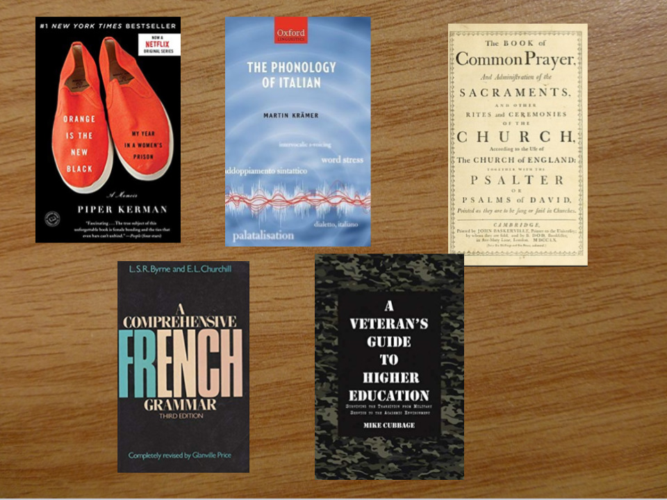 The doors open to an opulently furnished library. Antiquarian books line the walls. On the table are a number of books, you take a look to see if there are any clues to the crime.