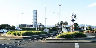 'The BIG roundabout, very slightly odd as there is a railway level crossing running through the middle of it, how strange! But somehow it works, mind you we have 2-3 trains a day in winter so it's not a big thing. Still if you happen to be there at the right time it's worth watching SH1 grinds to a halt to wait for a train to come through.