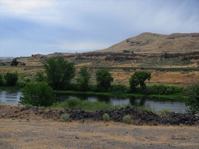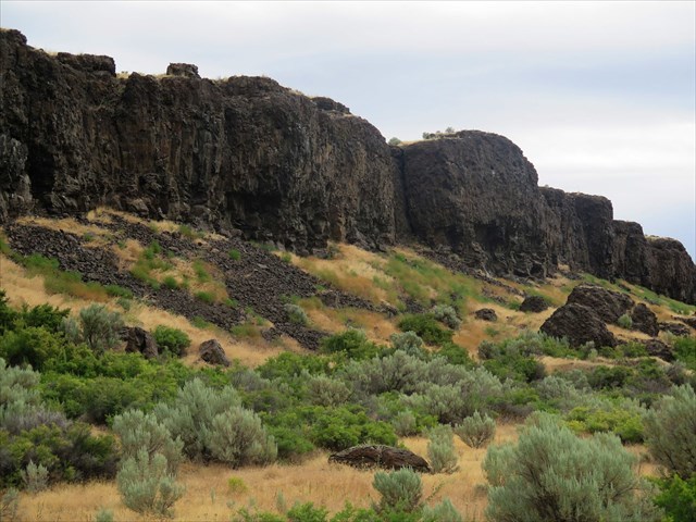 This earthcache places the finder on a 300 foot wide bench on the north side of the Yakima River with an eroded but intact basalt cliff above and a disintegrating cliff below.