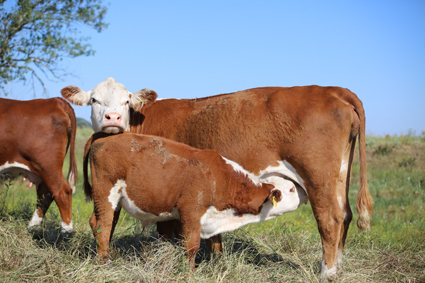 Hereford-Rinder sind leichtkalbig, sie benötigen normalerweise keine Hilfe bei der Geburt. Die Kühe sondern sich etwas von der Herde ab und bringen meist im Liegen das Kalb zur Welt. Die Kuh steht kurz nach der Geburt auf und leckt ihr Kälbchen trocken. Kuh und Kalb prägen sich dabei den Geruch gegenseitig ein und können sich dadurch später in der Herde wiederfinden. Ein Neugeborenes kann innerhalb der ersten Stunde nach der Geburt schon aufstehen und laufen. Wichtig ist, dass es möglichst schnell die erste Milch der Mutter aufnimmt. Mit zwei Wochen finden sich die