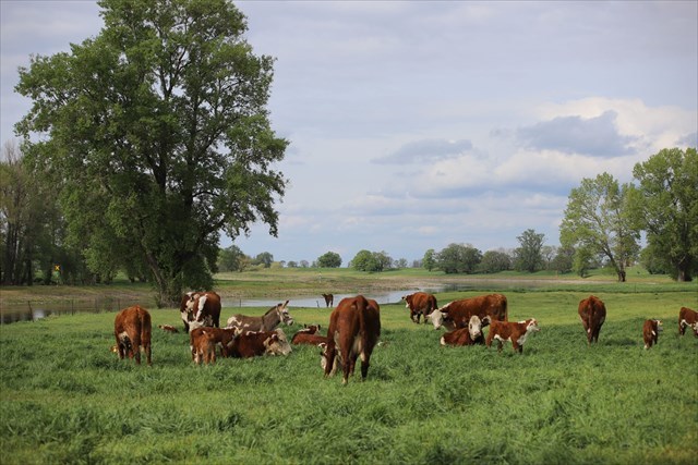 Seit einigen Jahren weiden Hereford-Rinder auf den Elbauen zwischen Pülswerda und Kamitz. Sie werden in extensiver Weidehaltung gehalten und sind das ganze Jahr über auf der Weide.