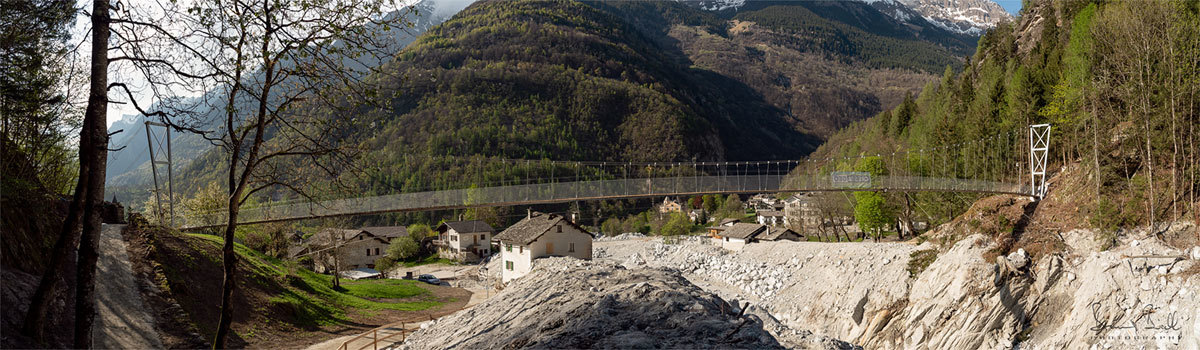 On the morning of August 23, 2017, 3.1 million cubic meters of rock collapsed from Pizzo Cengalo into the underlying Val Bondasca. It was the largest landslide in Switzerland since 1881. After the landslide, a river of debris also hit Bondo damaging many houses and overwhelming the old bridge that crossed the stream that divides the village in two. On 26 April 2018, a pedestrian and bicycle suspension bridge was opened, bringing together the two parts of the village after many months of hardship, making it a symbol of reconstruction after the landslide.