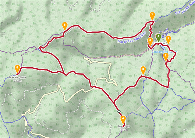 Útvonal: Jankovac turistaház - Nevoljas-csúcs - Ivacka glava - Skakavac-vízesés