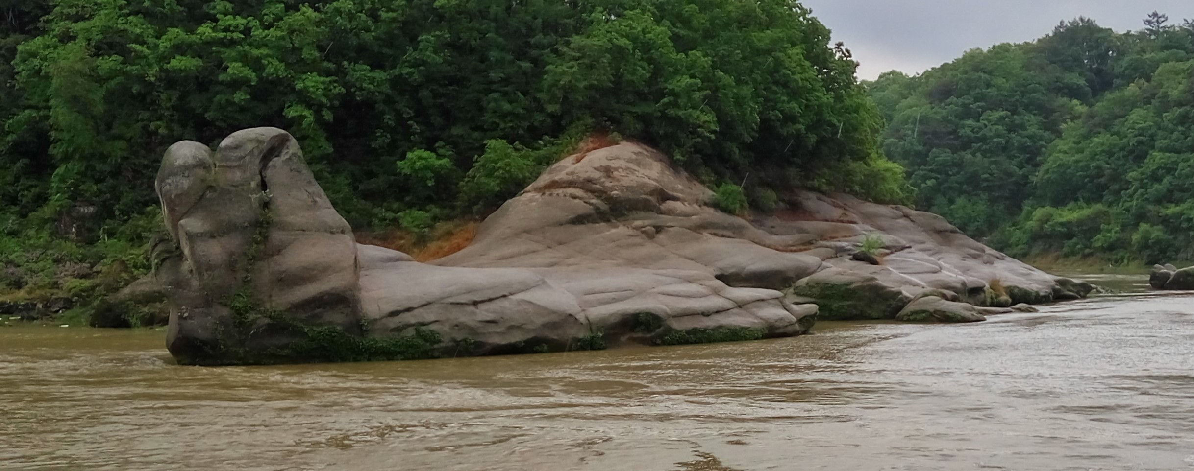 Why do rocks here show bright colors unlike other places? The bright-colored rock you see in front of you is a granite rock made during the Cretaceous period of the Mesozoic Era(2) deep underground. If you look around carefully, you can see that it's below the black basalt layer, which you can see a lot around Hantangang River. This tells us that lava flew over the granite when it flew into the Hantan River. After the lava flowed, the water, wind and sand of the Hantangang River moved for hundreds of thousands of years, and the basalt removed by erosion, leaving only granite that was more resistant to rain and wind. Even now, if you look around Hwajeongyeon, you can see that the black basalt remains on granite. In the vicinity of Hwajeolyun, there are basaltic rocks of the 4th period covered granite and rhyolite, andesite and acid dykes which intruded into granite. HwajeogYeon is named because granite rocks looks like a pile of rice straw. Shall we look it up?