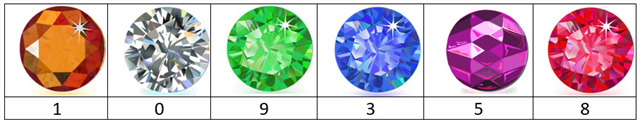 Find ædelstenene på billedet og brug tallet nedenunder.