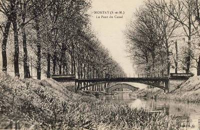 Ce vieux pont construit en fer riveté, comme la tour Eiffel, enjambait le canal latéral au Morin, aussi appelé branche alimentaire du canal de Chalifert. Ce canal avait son embouchure au niveau de Saint Germain sur Morin, et se jetait dans le canal de Chalifert au niveau d’Esbly. Aujourd’hui désaffecté, bouché dans sa partie amont au niveau de Saint Germain sur Morin, il résiste au temps qui passe, havre de paix pour canard, poules d’eau et autres poissons. Si vous êtes passé ou allez passer par Saint Germain sur Morin, allez loguer la cache « Les écluses meurent aussi # 2», vous verrez l’ancienne embouchure et la seule écluse. prennez le chemin qui passe derrière les usines, vous pourrez voir l'aqueduc enjambant le Morin, bel ouvrage de pierre visible au 2e plan sur la photo ci-dessous.