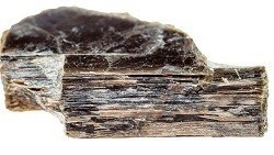 Formado de potasio, aluminio, hierro y magnesio, con un poderoso resplandor. Su color oscila entre verde oscuro, plomizo y negro, si bien en ocasiones, puede presentarse en un tono amarillo opaco.