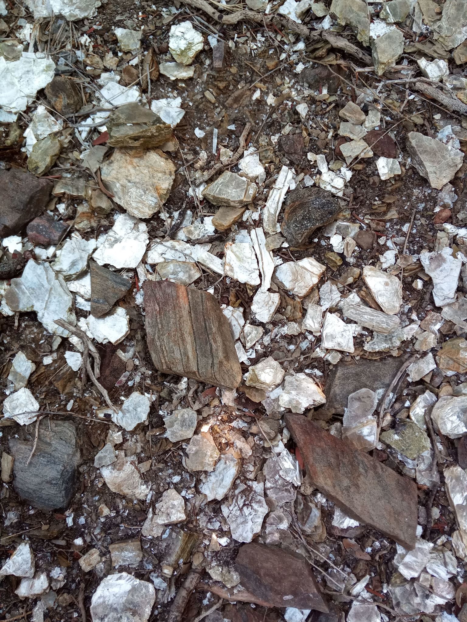 La moscovita és un fil·losilicat del grup de les miques. És incolora, amb lleugeres pàtines de color verd, gris o marró. És un dels millors aïllants tèrmics coneguts, per la qual cosa té nombroses aplicacions en la indústria elèctrica. A uns pocs metres es conserven les restes d'una antiga barraca de paret seca que els treballadors havien construït per amagar-se quan es feien les barrinades. Les raons per a l'explotació de la mica per part dels cadaquesencs s'han de trobar en la difícil situació econòmica pocs anys després de la guerra, en que la pesca era l'únic recurs econòmic important.
