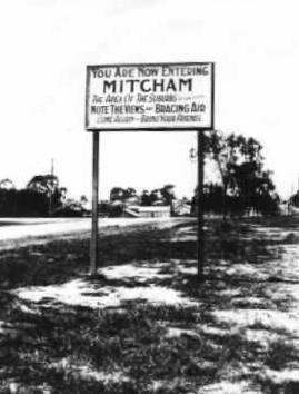 “You are now entering Mitcham the apex of the suburbs. Note the views and bracing air. Come again - bring your friends.”