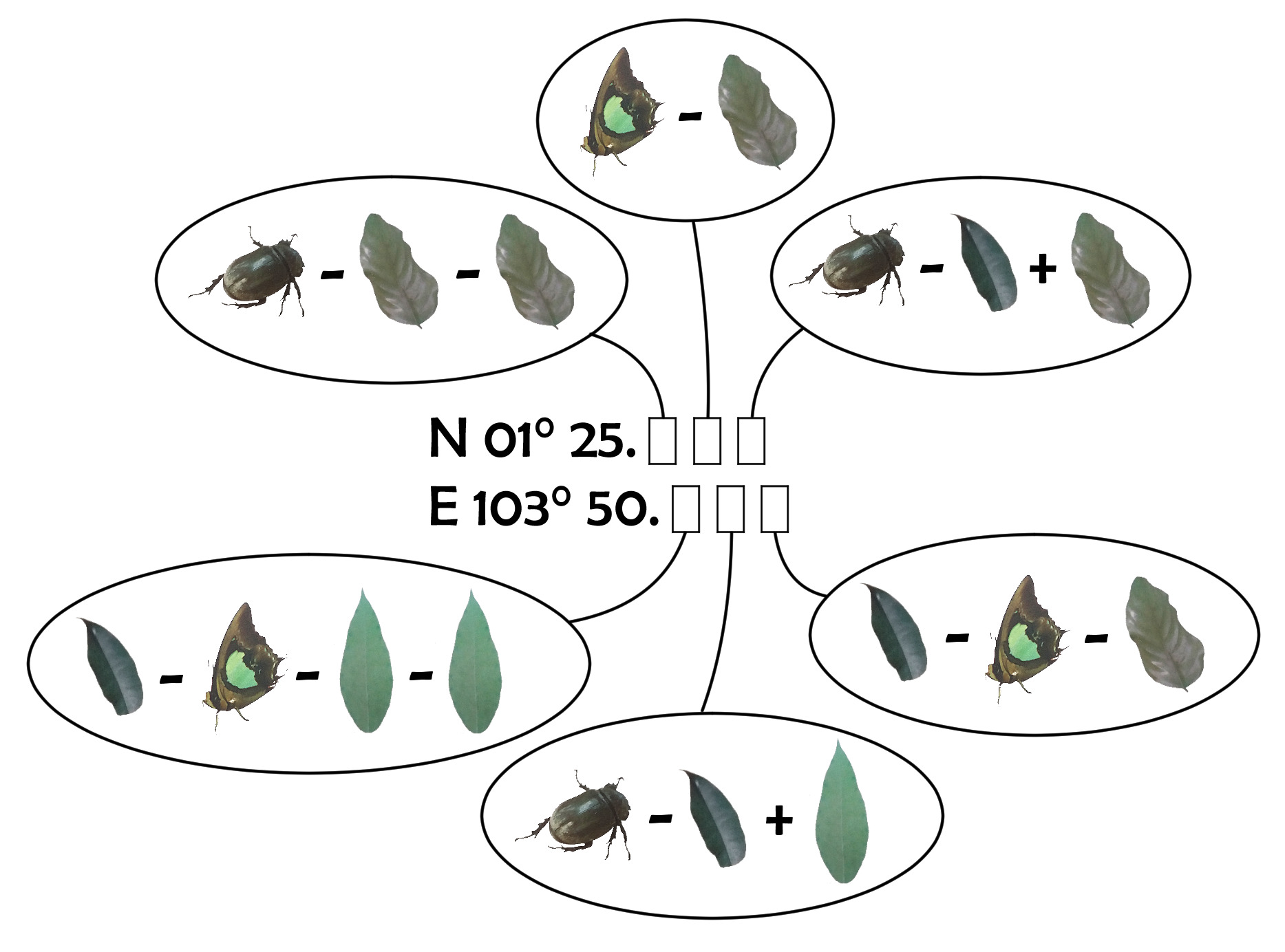 But enough about trees. Around the park, you can find 2 types of educational puzzles for children, in which they have to substitute letters into symbols to form sentences. You can find one of each close to the posted coordinates. To get the coordinates of the cache, you will need to find these structures and the letters the symbols represent, convert the letters into numbers using the standard A=1, B=2, C=3, ... , Z=26, then plug them into the equations below: