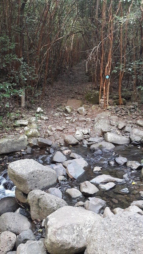 Der Weg liegt hauptsächlich im Schatten des Waldes und durchquert mehrmals kleine Flüsse (bei starkem Regen der Vorwoche nicht zu empfehlen).
