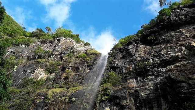 The gps may be a bit capricious because of the topography; the cache is in a hole between the roots of the single tree on the right of the waterfall (see photo spoiler)