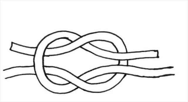 Přiložte konce dvou provazů proti sobě a z jednoho ovažte kolem druhého očko. Pak ovažte očko druhého a uvázanou spojku utáhněte.