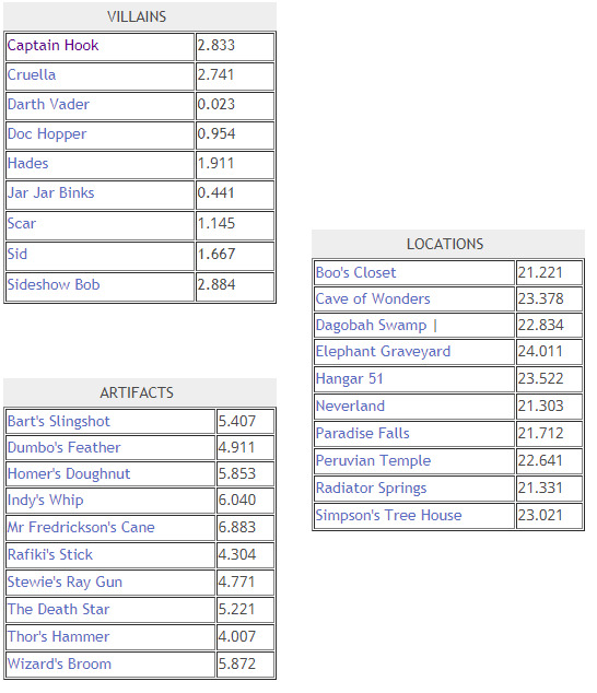 What was once was a well defined universe has now had barriers broken down, traditional order has been replaced with chaos and former vanquished villains have now been unleashed. Somewhere a Disney villain has acquired a Disney artifact and is hiding out in a remote Disney location hoping to use the power of that artifact to his/her advantage. Your job is to find out which location that is, discover which artifact they have acquired, and, most importantly, who they are. Think of it like a game of Clue, only with “Disney” characters.