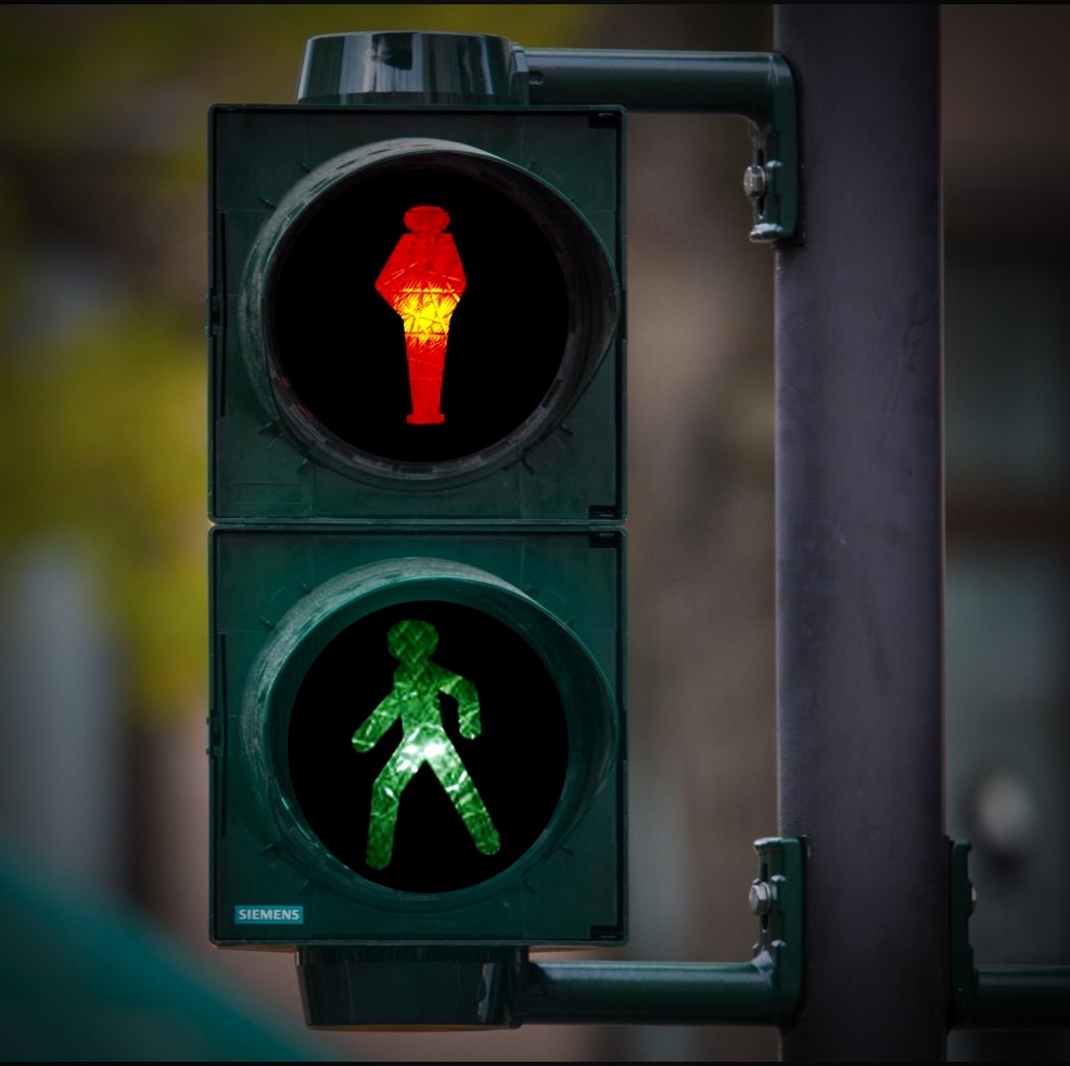 Bei ROT bleibe stehn, bei GRÜN kannst du gehn! Bei ROT musst du warten, bei GRÜN kannst du starten, das merke dir gut und sei auf der Hut!