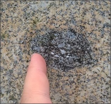 2) Classifique as duas rochas encontradas: a do xenólito e a rocha à volta dele.