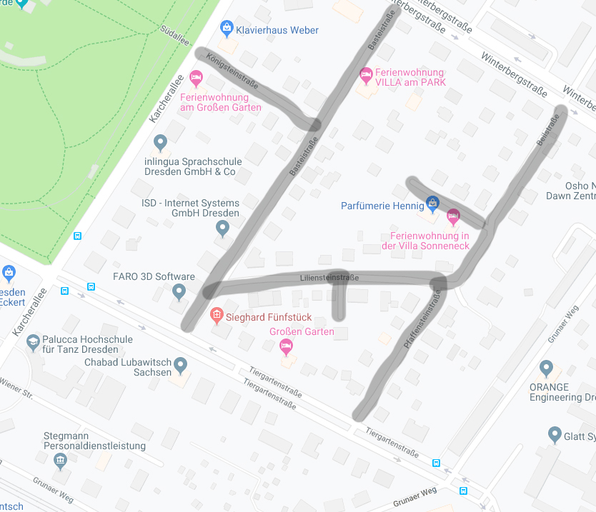 Ich war neulich mal wieder ein wenig spazieren und bin durch ein ruhiges kleines Gebiet gelaufen. Was mir auffiel, dass fast alle Straßennamen nach Orten in der Sächsischer Schweiz klangen: Beilstraße, Pfaffensteinstraße, Sonnensteinstraße, Liliensteinstraße, Basteistraße und Königsteinstraße.