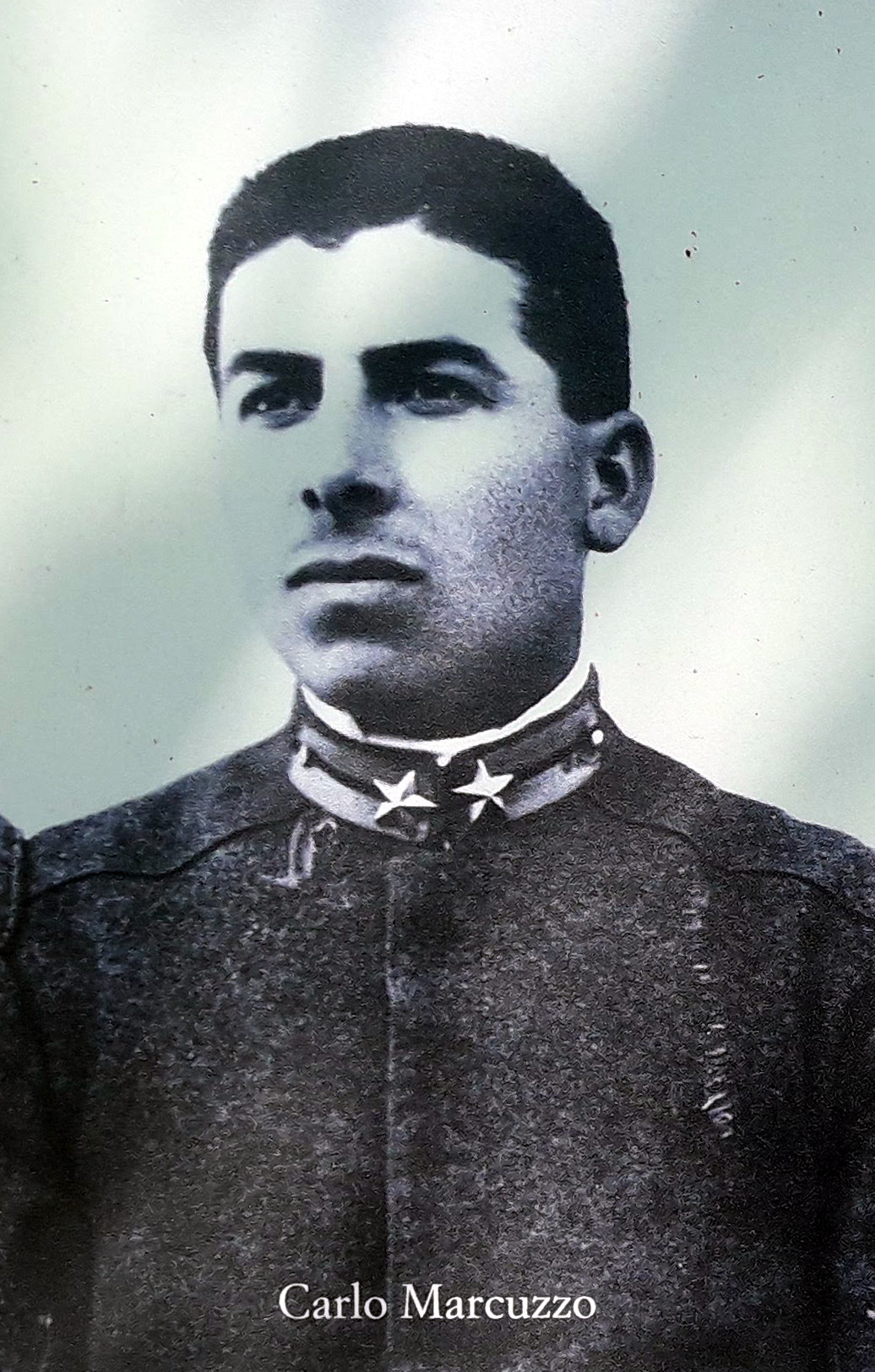 was decorated with the bronze and silver medal of Military Value. Enrolled as private, he became Maresciallo Aiutante di Battaglia for his valor and capabilities. With the Brescia Brigade, in April 1918 he moved to the French front. The brigade fought with value at Chemin des Dames, in the Aisne, during the final offensive against Germany. Carlo Alberto Marcuzzo died the 19 october 1918 for the injuries reported during an assault against a German bunker. After twenty days the war was over. He rests in the Italian military cemetery of Bligny in France.