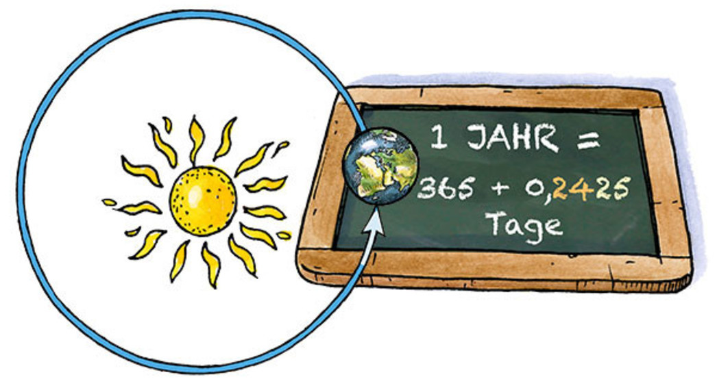 Für eine Sonnenumkreisung braucht die Erde 365 Tage, 5 Stunden, 48 Minuten und 45,252 Sekunden. Ein Kalenderjahr dauert aber nur 365 Tage, es ist also rund einen Viertel-Tag zu kurz. 45 v. Chr. führte der römische Kaiser Julius Caesar das Schaltjahr (lateinisch: annus intercalarius oder annus bissextus) ein. Jedes 4. Jahr erhielt der Februar nun 1 zusätzlichen Tag.