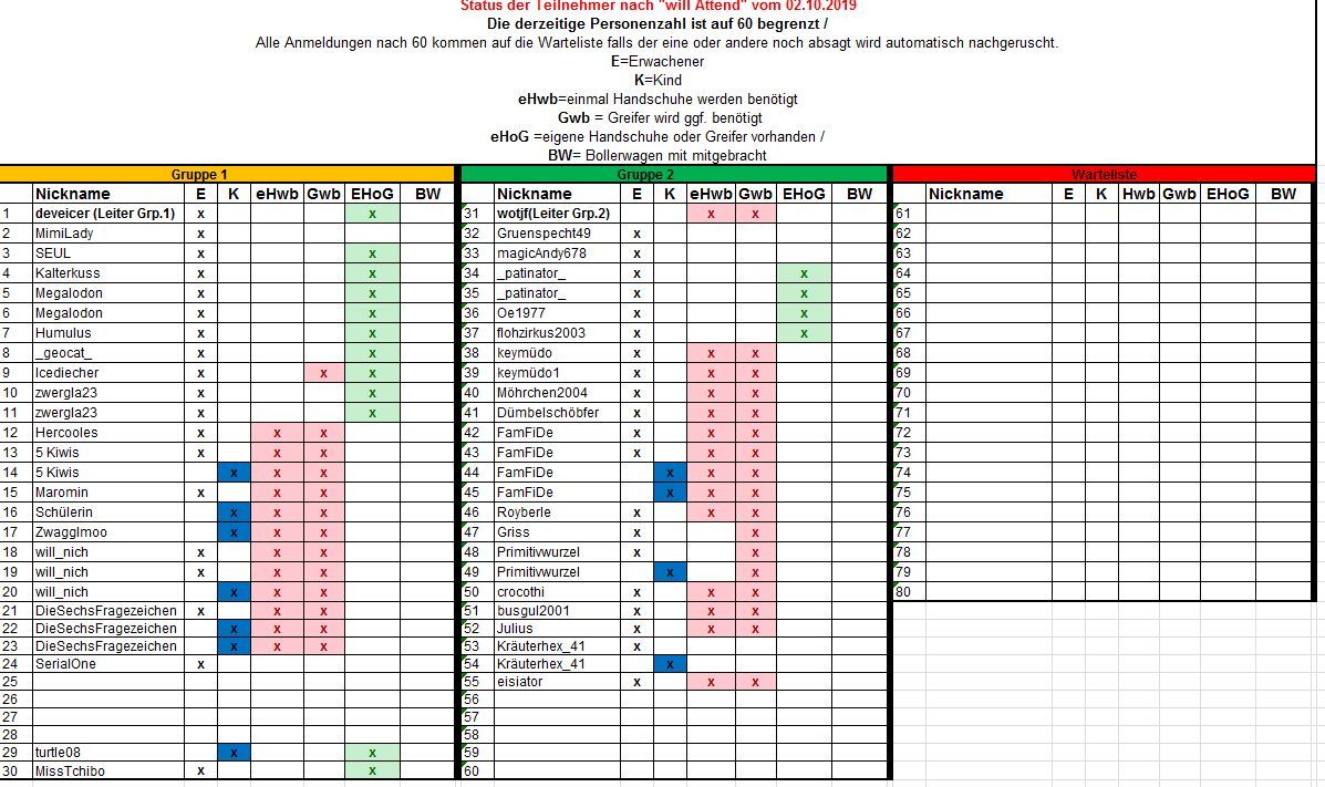 Bitte bis 27.09.2019 anmelden, da die ungefähre Teilnehmerzahl melden muss. Auf +/-5 Personen wird es dann nicht ankommen.
