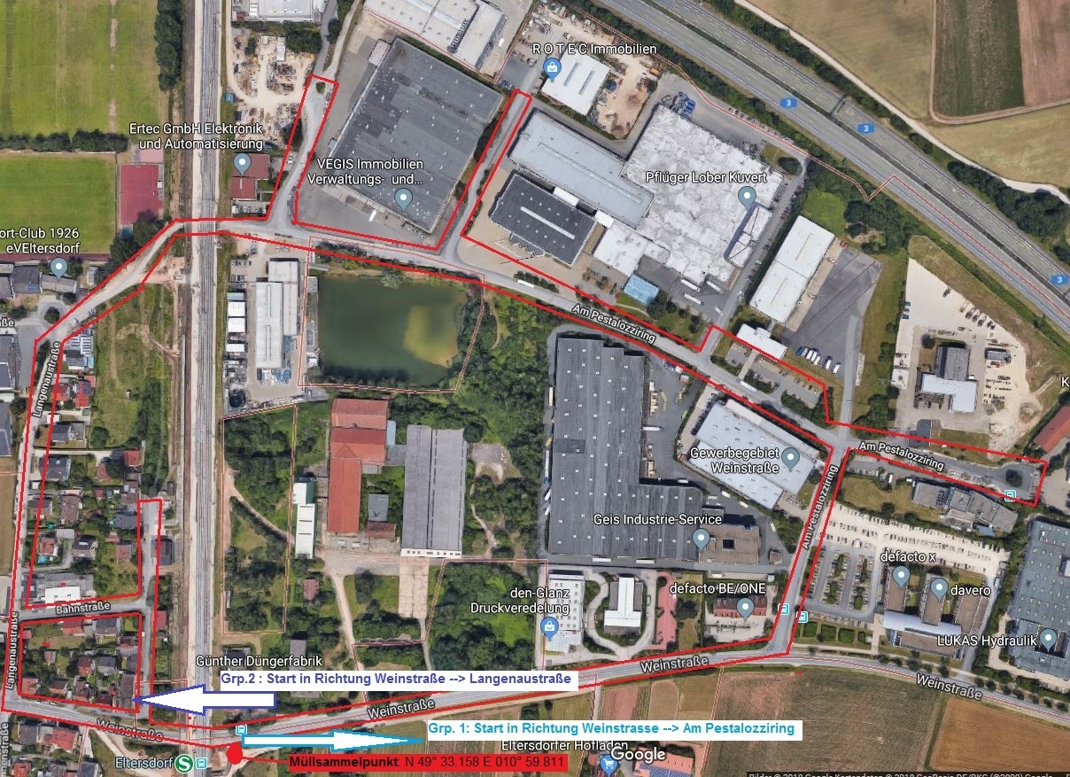 - Zentraler Sammelpunkt für Müllsäcke und andere gefundene Dinge: N 49° 33.158 E 010° 59.811 (rot markiert auf Karte)