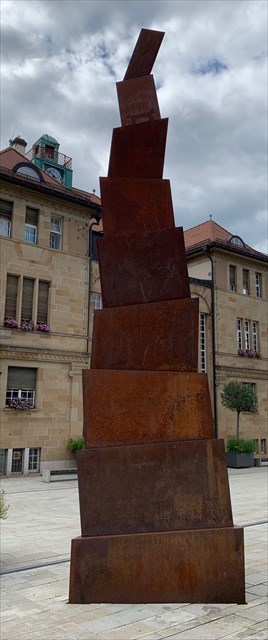 Die 'Schramberger Säule' wurde vom Künstler Jürgen Knubben für den Rathausplatz der Stadt geschaffen. Der Form nach handelt es sich um einen Obelisken, der spiralartig nach den Gesetzen der Mathematik neun Meter in die Höhe wächst. Gut fundamentiert, wird die Stahlplastik nach oben hin immer filigraner und kann als Symbol gelten für Traditionsbewusstsein und Innovationsbereitschaft der Großen Kreisstadt.