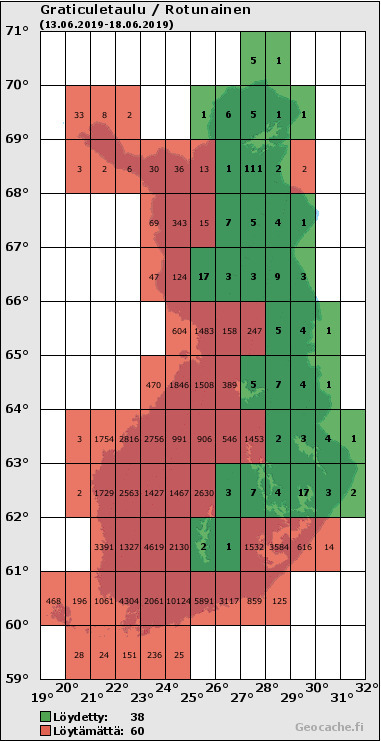 Reissun tavoitteena oli luonnollisesti täyttää kauniin kotimaamme kunta- ja graticulekarttaa. Sekä kuntia että graticuleja kertyi 38, osalle uusia, osalle ei.