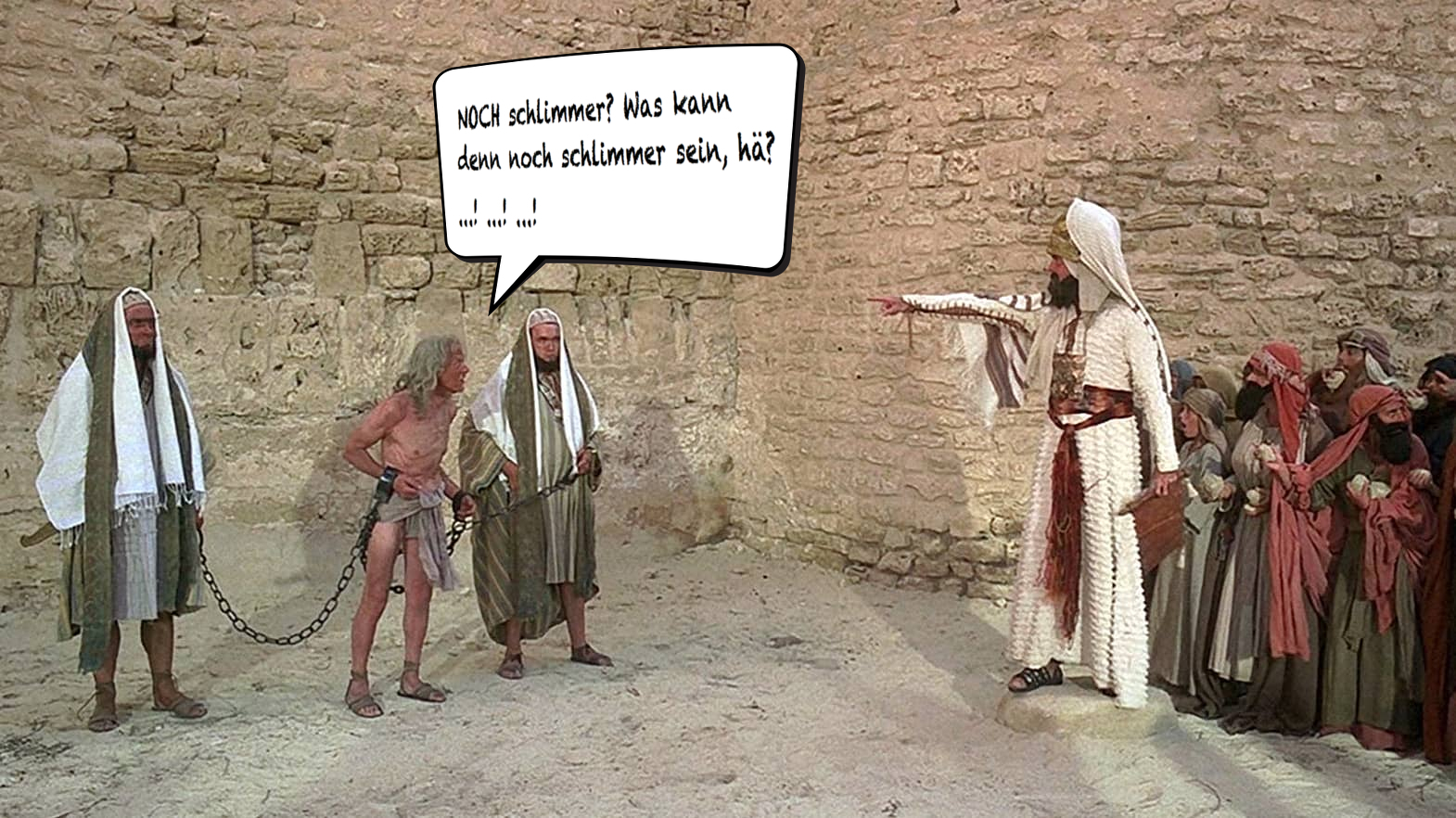 Glücklicherweise kam es bei der Vollstreckung des Urteils zu einem derartigen sprachlichen Tohuwabohu, dass das Verfahren überraschend unterbrochen und somit ein felsenschwerer Justizirrtum in letzter Sekunde durch des Volkes Intervention vermieden werden konnte.