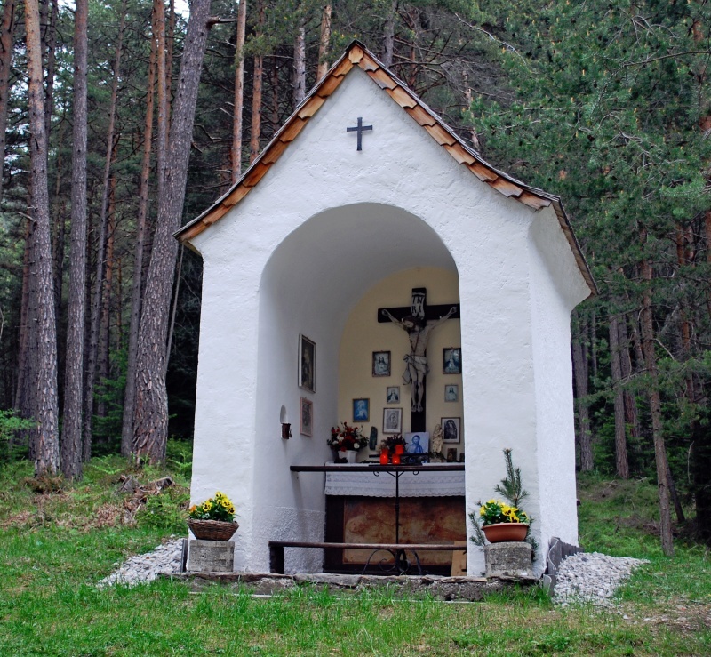 Die offene, gemauerte Kapelle mit Satteldach stammt aus dem 19. Jahrhundert und ist dem Viehpatron St. Wendelin geweiht. Sie beherbergt im Inneren ein großes Kruzifix.