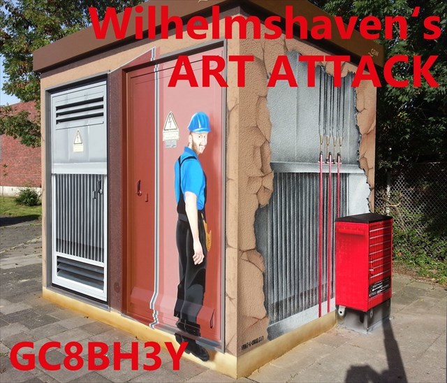 Dieses ist eines von mehreren Trafohäuschen in Wilhelmshaven, welches angemalt ist, und in Zusammenarbeit mit Herzilein und mel-whv gibt es mehrere Caches dieser Serie hier.