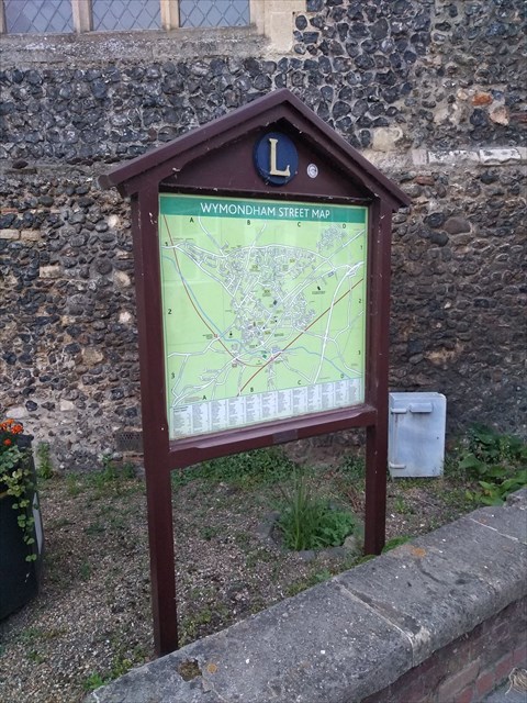 The town map sits in a display case presented to the town by the Wymondham Lions Club as part of a community project some forty years ago. The map within is more up to date and features most of the new estates around town, albeit with the current rate of development monthly revisions would seem to be required! The cache is not at the given coordinates, which are for the map itself.