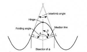 The image shown gives the interlimb angle for an anticline fold; flipping the image vertically will give the orientation of the interlimb angle for a syncline fold.