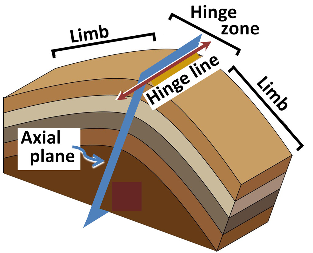 The fold shape involves identifying both the order of the strata in the layering as well as the type of bend itself. Where the axial plane bisects the limbs is called the hinge line, as the fold centers around this line. The two arms that reach to the hinge line are known as limbs.