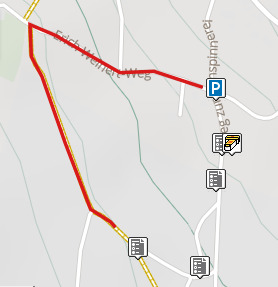 1. Update Februar 2020: Nachdem kurz nach dem Publish der neue Besitzer des gesamten LPG-Grundstückes Verbotsschilder aufgestellt hat die den Durchgang untersagen, haben wir überlegt den Cache aus Frust ganz zu deaktivieren. Wir haben uns dagegen entschieden und weisen euch darauf hin, dass ihr Stage 3, die südliche Lagerhalle, nicht anlaufen dürft. Den "offiziellen" Weg auf öffentlichem Grund haben wir hier rot eingezeichnet.