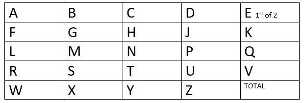 A|B|C|D|E|F|G|H|I|J|K|L|M ------------------------- N|O|P|Q|R|S|T|U|V|W|X|Y|Z