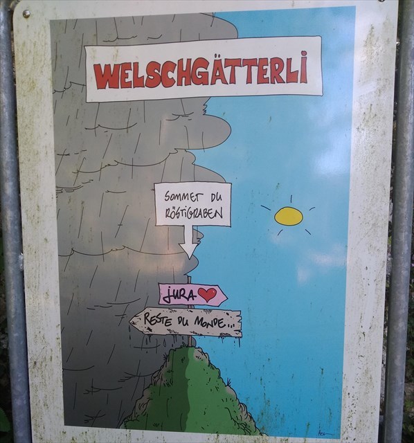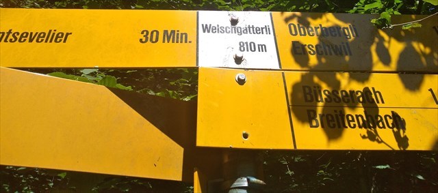 Tipp: Wie schon erwähnt ist nahebei das Welschgätterli, die "petite porte des Welches". Es ist der höchste Punkt des Passweges zwischen Montsevelier (mittlerweile Teil von Val Terbi) im Bezirk Delémont des Kantons Jura und Erschwil im Bezirk Thierstein des Kantons Solothurn. Es ist somit gleichzeitig Sprachgrenze. Die Passhöhe beträgt 810m, wie durch einen passenden Wegweiser noch im Solothurn befindlich bestätigt wird (vgl. Referenzpunkte):